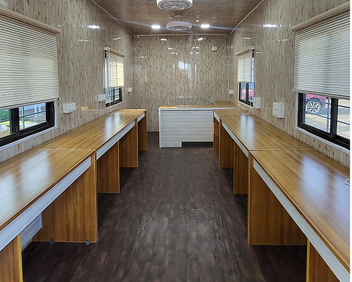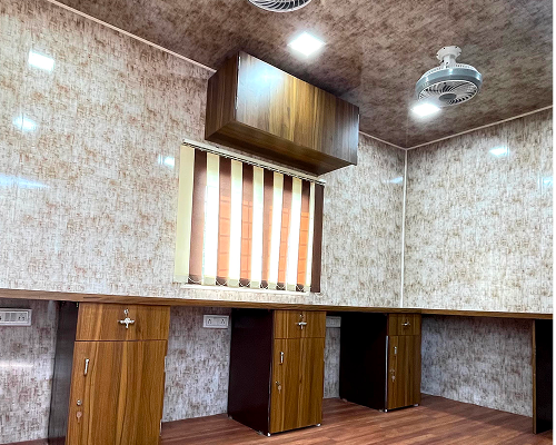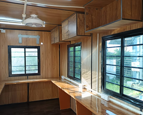 For larger teams or long-term use, our 40ft office containers offer ample space with modern interiors. They can be customized to include meeting rooms, cabins, or multi-desk setups.